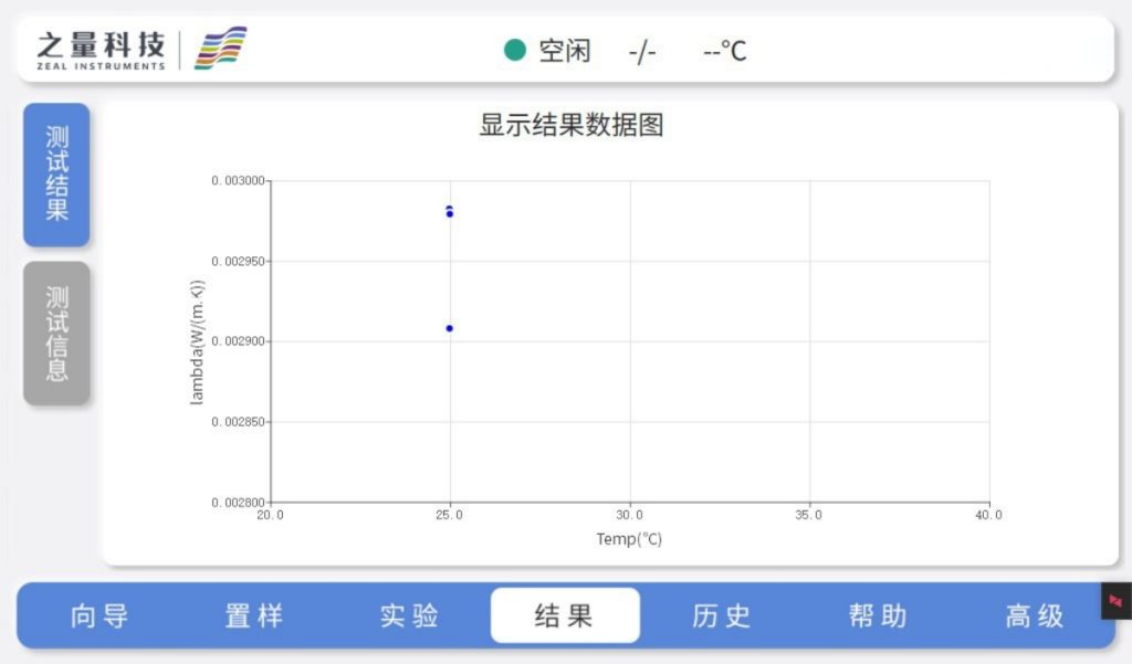 Based on high-precision measurements, the Heat Flow Meter HFM 510AE also supports graphical display of test results, aiding experimentalists in visually analyzing experimental outcomes to enhance efficiency. Using the VIP board as an example: