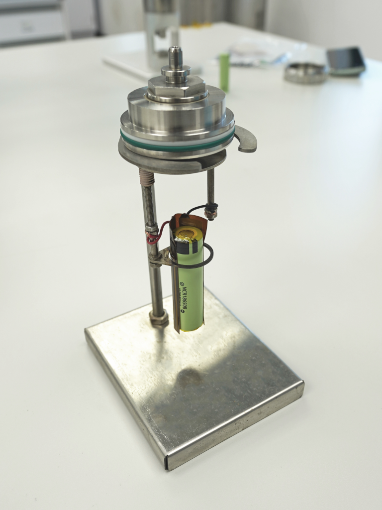 - Step 2: Attach the heating element to the battery surface, ensuring full contact. Connect the heating wires and assemble the battery into the oxygen bomb chamber as shown in Figure 2.